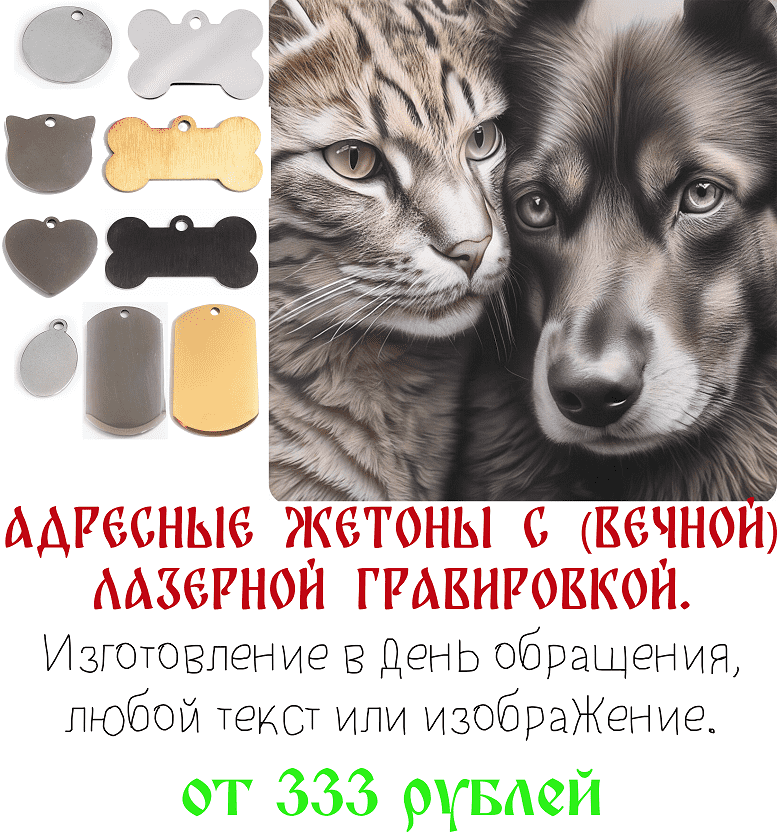 Адресные жетоны для кошек и собак с лазерной гравировкой, а также армейские жетоны с гравировкой ( любой текст или изображение) Изготовление в день обращения. Большой выбор разных жетонов. Индивидуальный подход к каждому заказу. Для армейских жетонов есть в наличии цепочка + защитный бампер.